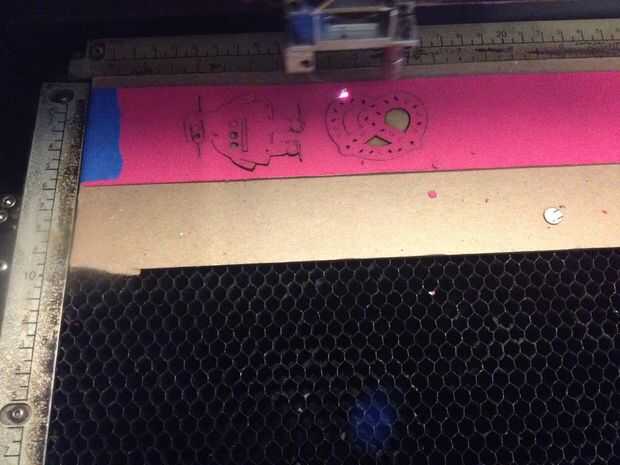 Coloque el cartón de respaldo con el K-tape en él en el cortador del laser y alinee su archivo de Illustrator con la ubicación de la cinta en la cama de corte.