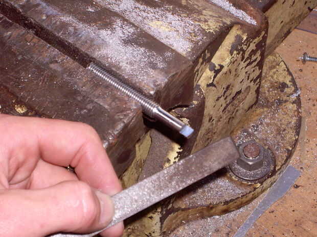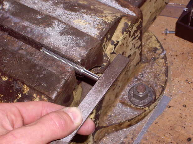 Es mejor si el perno (o lo que usas como el mecanismo) es más grande entonces el tubo va a caber en (el tubo de aluminio). Para hacer el tornillo tit dentro del tubo es un proceso algo lento. Comience por cortar la cabeza del perno, esto hará que sea mucho más fácil trabajar con. Puso el cerrojo en una prensa del taladro (o torno si tiene uno) y comenzar a limar y lijar suavemente hasta que se ajusta dentro del tubo.