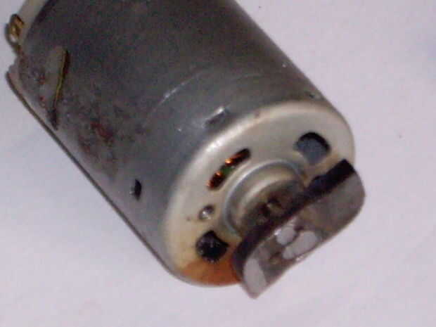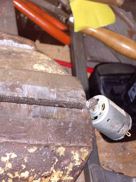 Taladre un agujero de 1mm en el centro y luego otro de aproximadamente 4mm por encima de él. Encuentras un motor bastante de gran alcance para usar en tu arma y tomar una medida de la anchura del eje. Luego vuelva a perforar el agujero central para ajustar el eje.