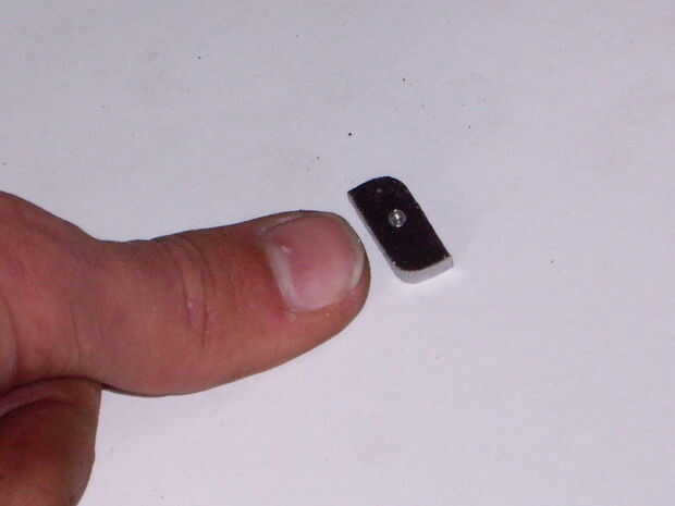 Encontrar una parte bastante gruesa de metal (sobre 3-4 milímetros), asegúrese de que el metal es fácil de trabajar porque usted ser agujeros minúsculos. Corte una pieza de 1 1/2 cm de largo y 6-7 mm de ancho. Moler que las esquinas redondas para evitar que interfieran con otras partes de la pistola.