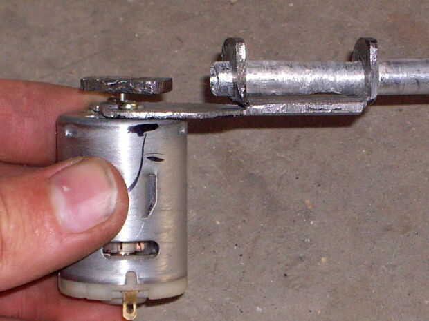 Esta es la parte que sujeta el motor a los soportes de tubo. Es una forma simple para crear sólo tener que compensar el cojinete del eje que sobresale del motor. Simplemente corte una pieza de metal en forma rectangular y que sea capaz de montar el motor y perfore agujeros pequeños para mantener en su lugar. Sostenga el tubo de montajes contra la carcasa hasta que estés satisfecho con donde se montarán (a lo largo de la misma línea central como el eje del motor) traza a su alrededor entonces cortar cualquier parte innecesaria del metal; para crear una forma mucho más cómoda.