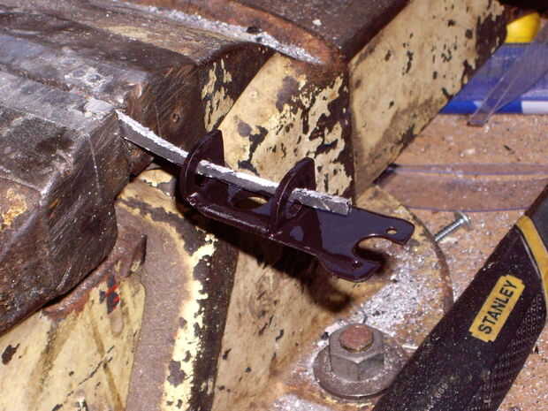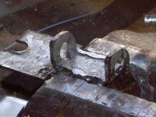 Buscar alrededor de una pieza de metal que felizmente se doblará a 90deg sin rotura o deshilachado. Perfore un agujero del tamaño del tubo (o un poco más pequeño) y curva en forma de "U" extendida (ver figura #1) entonces procedió al taladre el segundo agujero en el otro lado.