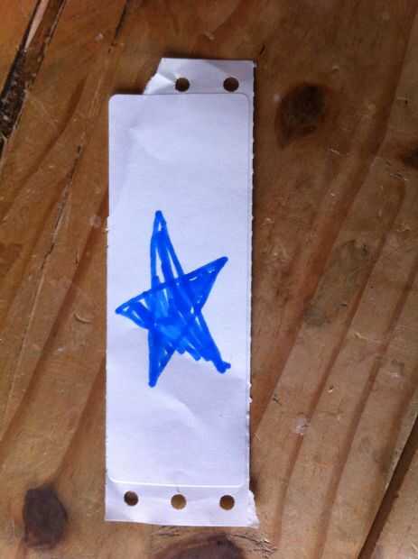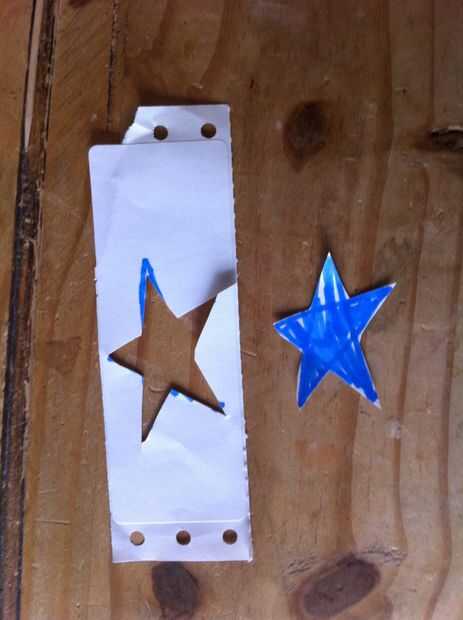 Dibujar un diseño en la etiqueta blanca y cortar.