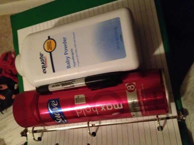 Paso 1: fuentes de Cinta, marcadores permanentes, laca y polvo de bebé o de la plantilla (opcional)Paso 2: Dibujar diseño Dibujar o trazar un diseño en el área deseada.Paso 3: Polvo lo Pon talco sobre diseño. Luego frótelo.Paso 4: aerosol Aerosol de