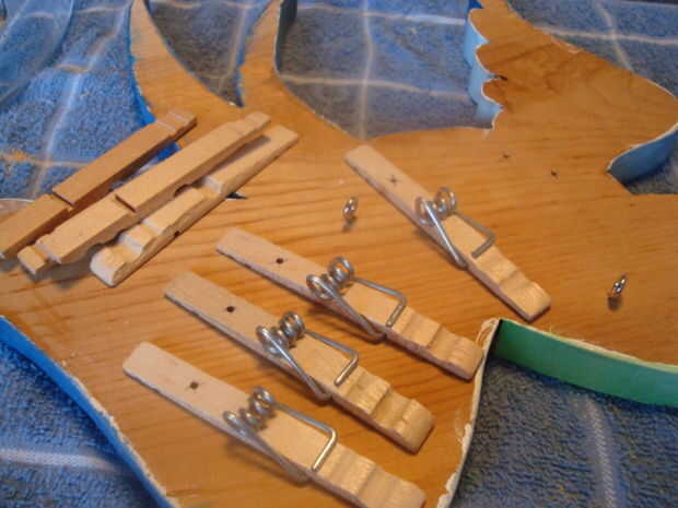 Ahora desmontar las pinzas para la ropa otra vez, pero esta vez con las piezas perforadas unido al metal muelles.