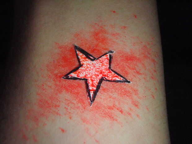 Apague el teléfono en un Hack de luz negra. Su super fácil de hacer!Todo lo que necesita es un smartphone con una luz, tres pedazos de cinta pequeña y dos sharpies. Una azul, una morada.Tomar la primera pieza de la cinta, poner encima la cámara flash