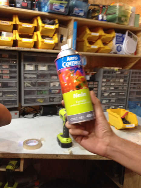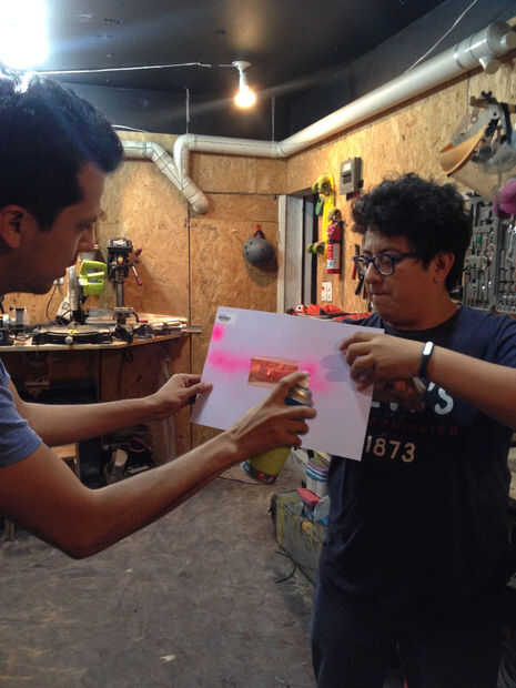 Agitamos el bote de pintura punk y ponemos la plantilla de manera que no se doble y pintamos un unos 30 cm de distancia.
