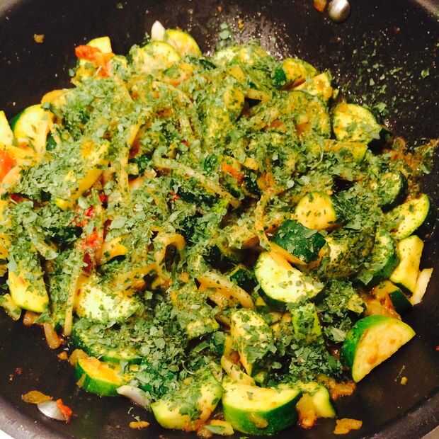 Que añadir el calabacín y 1 cebolla en rodajas sal y pimienta y 1/2 taza cilantro fresco cubren y hierva a fuego lento durante 15 a 25 minutos (agitación en el medio).
