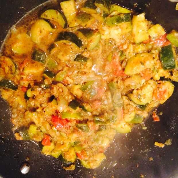 Una vez que se convierten en una salsa caramelizada agregue todas las especies excepto la sal y la pimienta. Mantener la agitación y 1/2 taza de agua deja hervir removiendo.