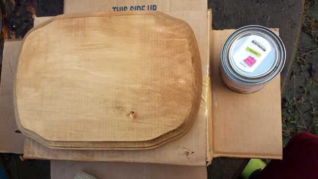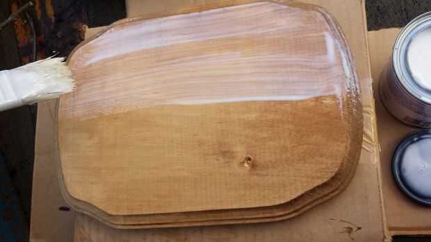 Empezar por la coloración de la placa si desea. Trate la mancha en la parte posterior primero para asegurarse de que gusta el color, luego mancha todo. Asegúrese de que la mancha se ha secado completamente, luego aplicar el barniz. Me recomienda solo siguiendo las instrucciones en el barniz, pero por lo general, se aplican en una capa delgada en la dirección de la veta de la madera.