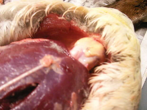 Una vez que ha hecho la yugular (error) será brotando sangre. Ahora es el momento de tomar su pájaro a un fregadero y lavar la sangre de las plumas y en otros lugares. También trate de drenar la sangre de la carne.