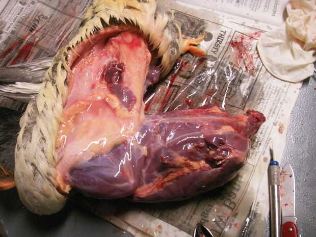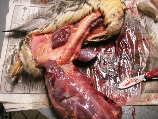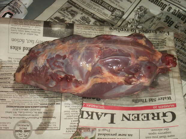 Ahora para las piernas. Finalmente nos va cortarlos justo como las alas. Excepto que se cortar en la rodilla conjunta. Una vez que las piernas son apagado cuidadosamente reducir la ventilación. Corte alrededor de la ventilación y bajar un poco.