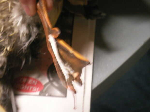 Ahora tenemos que limpiar nuestra bolsa de pato. En primer lugar sacar las piezas grandes de grasa. No corte demasiado duro o rápido, usted podría rasgar la piel. Buscar ahora el cuello de los patos. Comienza a tirar en él y ver que la piel vaya de adentro hacia fuera alrededor de él. Seguir tirando con cuidado. puede que necesite su cuchillo atravesar alguna mancha difícil. Si puedes, haz todo el camino hasta la cabeza. Si usted tiene una gran cabeza pato tendrá que hacer un corte en la parte posterior del cuello para sacar la cabeza. Ahora cortar el cuello de justo al lado de la cabeza, tan cerca como usted puede conseguir. Ahora tienes que hacer un agujero en la parte posterior de su cabeza. Trabajar un cuchillo o un taladro. Ahora uso un pick y obtener todos los sesos. Estos se pudren mal si no se quitan. Te olvides de cortar la lengua! Asegúrese de que deshacerse de la tráquea completamente antes de volver la piel.