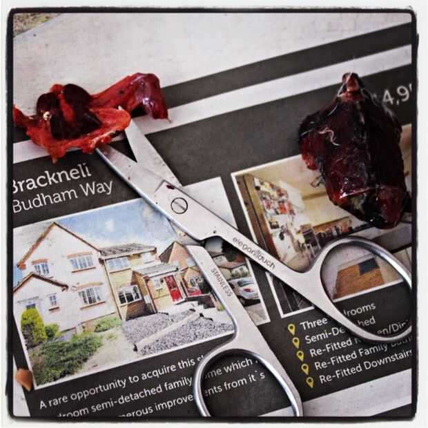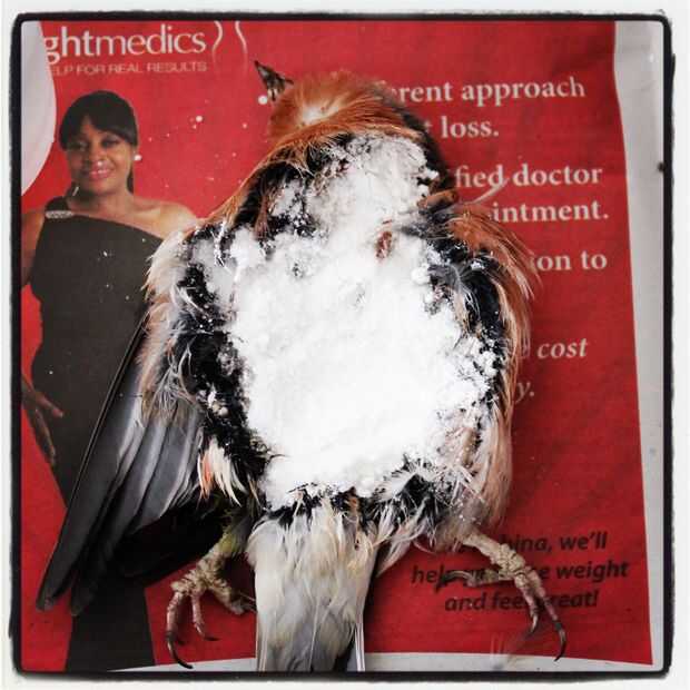 Ahora para el secado y limpieza, utiliza una mezcla de harina de maíz y soda cristales, estoy pensando en que es lo mismo como almidón, bórax y maíz que fue recomendado en las instrucciones de taxidermia de Estados Unidos. No seguro cuánto tiempo dejarlo, supongo que es mejor dejar durante la noche. La segunda ronda va a ser divertido, yo soy una mierda en la siembra.