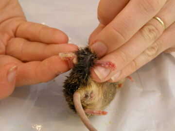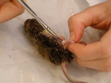 Ahora necesitarás tijeras para cortar la pierna en la articulación de la cadera. La pierna dos huesos permanecerá atado a pie y pieles para su uso posterior cuando conectar las extremidades.