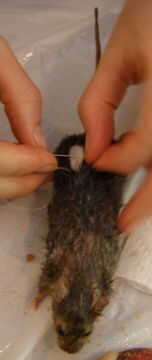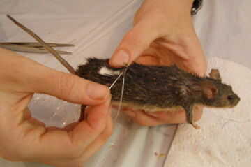 Coser desde el cuello hasta la cola, Esponjar el pelo según sea necesario para impedir que consigue cogido para arriba en el hilo. El hilo debe básicamente disappearinto la piel, aunque puede utilizar un mismo color para evitar problemas.
