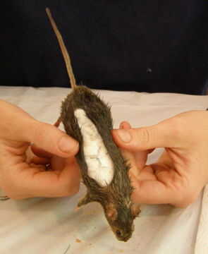 Cuando se ha cerrado con éxito la apertura, hacer un nudo justo por encima de la superficie de la piel y empujar la aguja a través del pequeño espacio al final de la línea de cosido y bolitas de algodón; puede salir a través de la piel de más en cualquier lugar. A través de tirar hasta que oiga el nudo pop dentro de la cottonballs. Corte la cadena cerca del final de la piel, luego tirar de la piel hasta que la cola final fo la cadena se tira nuevamente dentro. Esto debe ser suficiente para sostener sus puntos de sutura en su lugar.