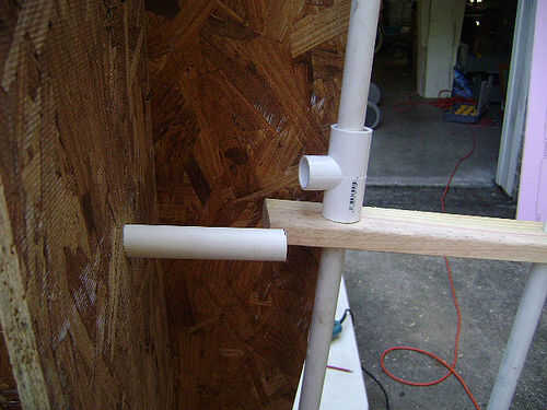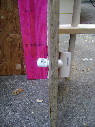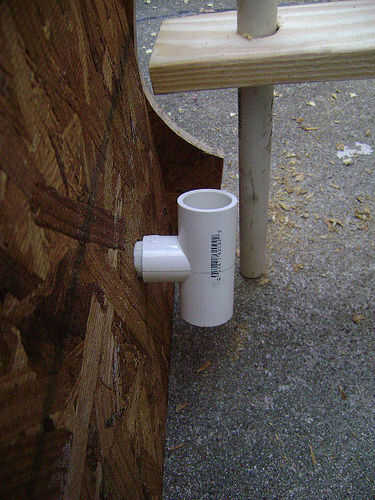 He utilizado sobre conexiones de tamaño "T" (3/4" a 1/2") para permitir que la cerca se coloca en el patio y entonces utiliza piezas cortas de PVC como las anclas.