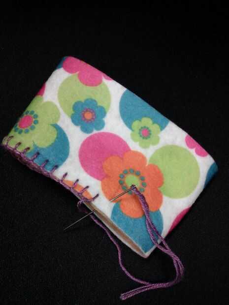 Borda una puntada manta alrededor de la parte superior e inferior de ambiente acogedor, a través de ambas capas. Bordar la sidealso expuesta.  He incluido un enlace sobre cómo bordar una puntada de manta. http://www.futuregirl.com/craft_blog/2007/9/Tutorial-Hand-SEW-Felt.aspx