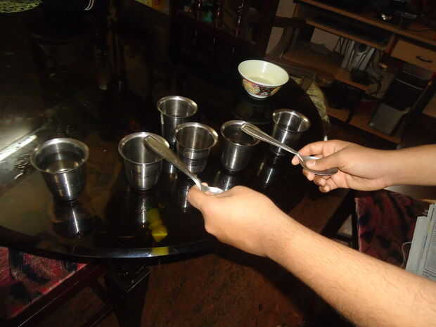 Una manifestación de la presión de airePaso 1: materialesEncontrar un pedazo de papel de construcción y una taza con tapa plana con agua en ella.Paso 2:Coloca el papel encima de la tapa de la taza.Paso 3:Aplique presión sobre el papel encima de la ta