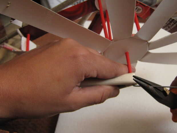 pasar el alambre a los rollos de papel y doblar cada lado.