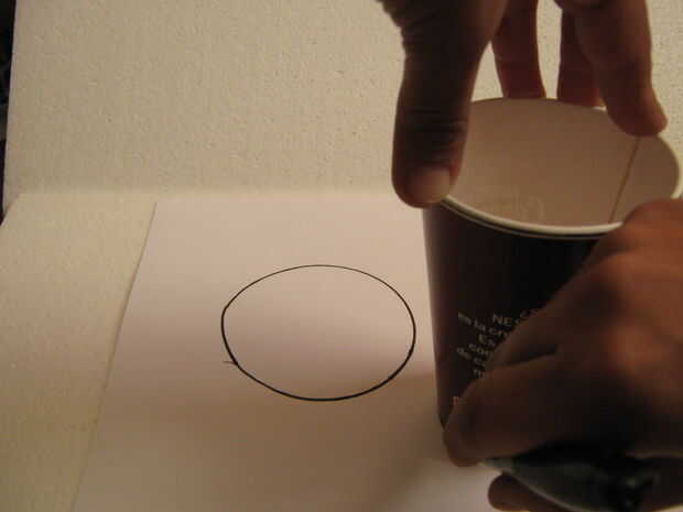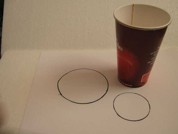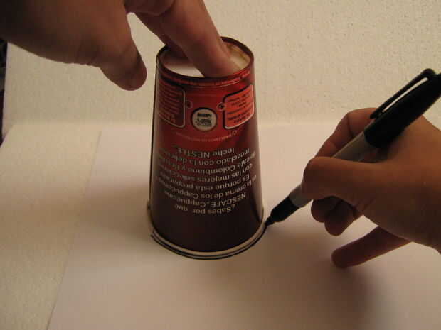 tomar el café Copa y rastro de arriba y abajo sobre un papel. Luego corta los dos círculos