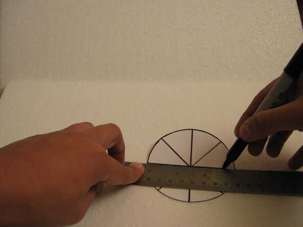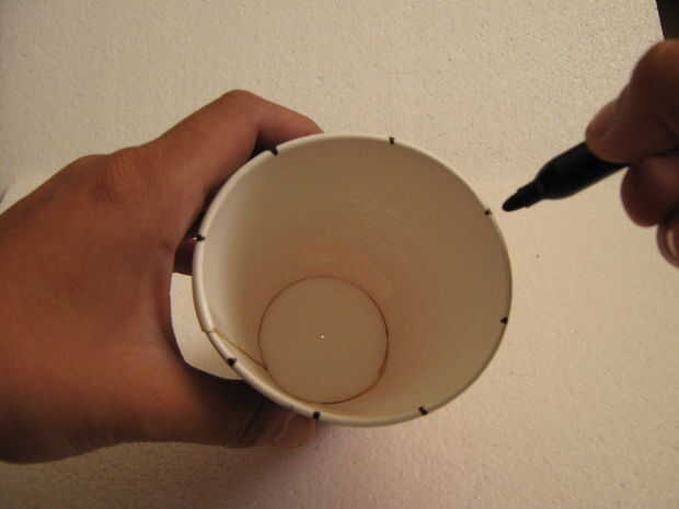 y hacer lo mismo, trace las marcas de doblez y las use para marcar ocho puntos en la parte más ancha de la Copa.
