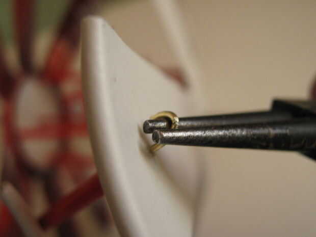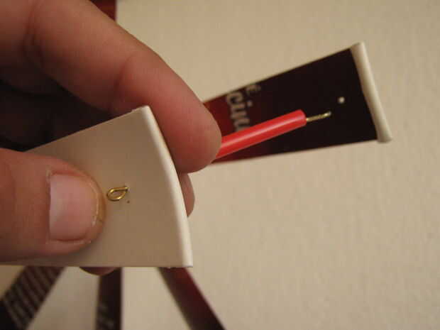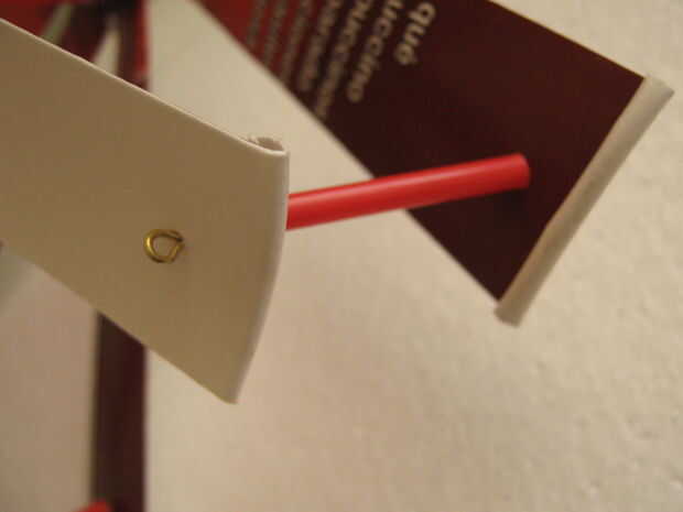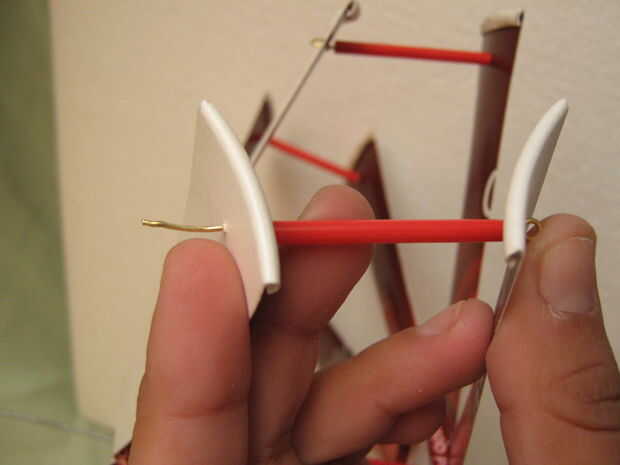 puso un pedazo de plástico paja entre (2 pulgadas) y terminó con un rizo con los alicates. Hacer el mismo paso en cada extremo, a las dos flores.