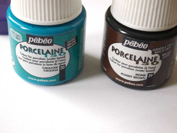 • Pintura Pebleo porcelana 150 (pintura segura de alimentos) en azul, marrón y negro y rojo