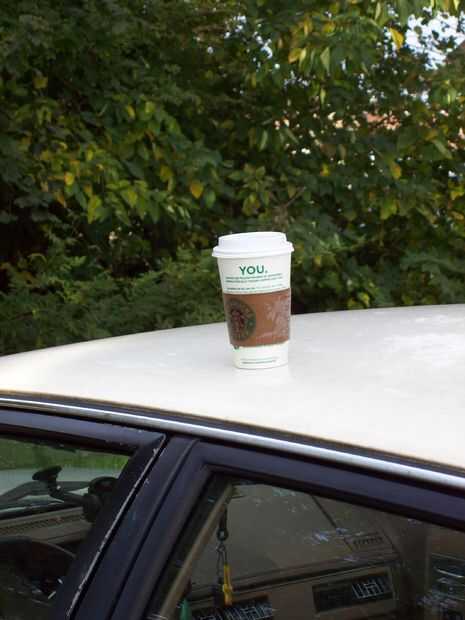 Las personas mantener conducir con un teléfono celular no distraerlos. Me decidí a ver si eso era verdad. Me pensaba y pensaba qué podía hacer para probarlo. Entonces me golpeó. Si pongo algo en el techo de mi coche, podía ver si la gente nota. Decidí una taza de café era la mejor opción, y previa consulta con mis amigos, me dijeron ir con un StarBucks taza w/une "Copa condón". Lo hice, y la reacción fue buena lo suficiente para mí darle la taza de su propio feed de Twitter ( twitter.com/RoofCoffeeCup ), donde escriban lo que la gente mientras que conduce, entonces Tweet un resumen más adelante. Es hilarante porque yo puedo estar manejando a 65 millas por hora, y no consideran como una taza aún podía ser sobre mi techo. Cuando turnarse frente a ellos, y la Copa no se mueve, todavía me dicen. Incluso en los semáforos, cuando la gente salir de sus coches y tratar de tomarlo, algunas personas no averiguar no es real.