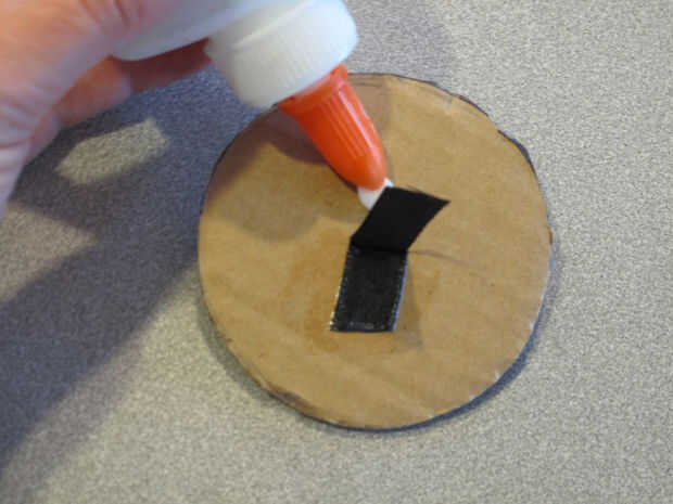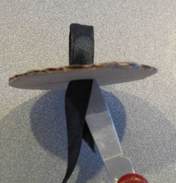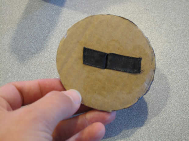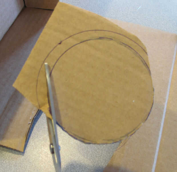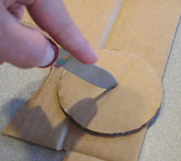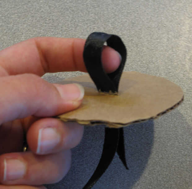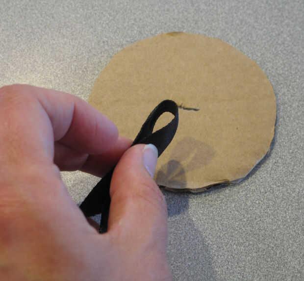 Usando un cuchillo o x-acto corta una pequeña abertura en el centro de su círculo de cartón. Que sea sólo lo suficientemente grande como para acomodar la cinta, o cadena.