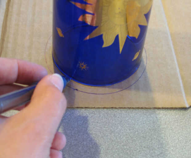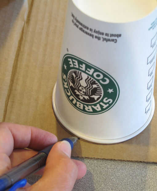 Trace una línea alrededor de la parte superior de la copa en su pedazo de cartón.