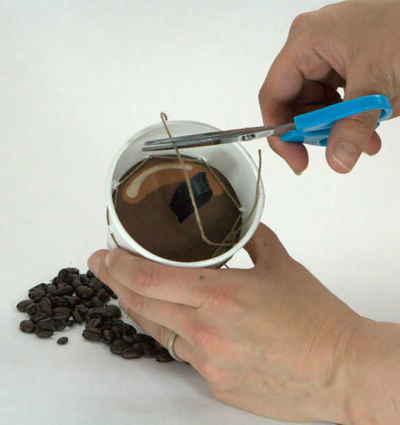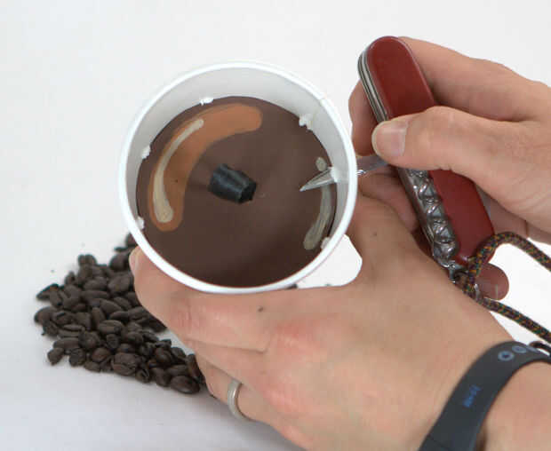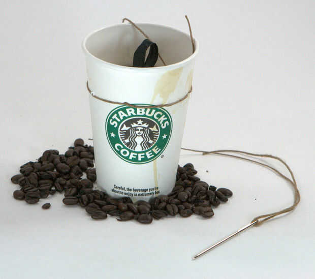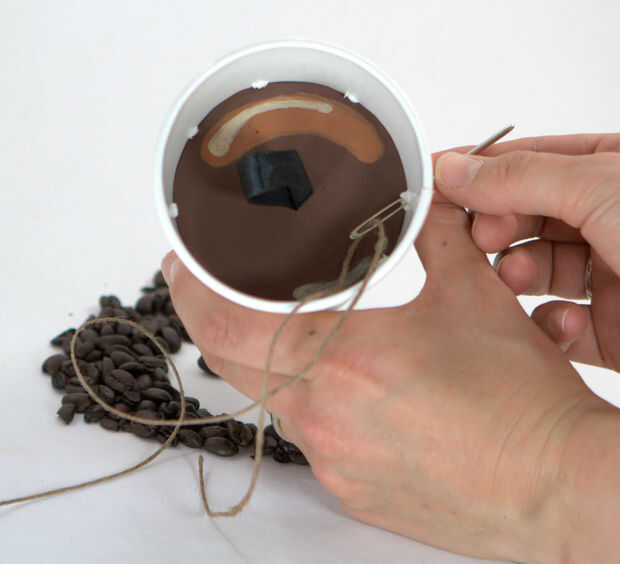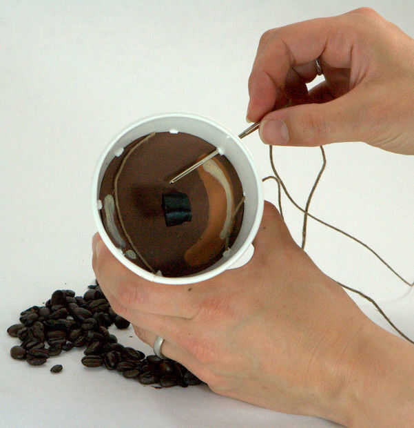 Estaba tratando de hacer una versión un poco más segura, pero no quería utilizar el pegamento para que pudiera ser usado de nuevo. Por lo que penetra los agujeros en la parte superior (justo por encima de cuando la tapa se ajusta forma segura). Un número impar de agujeros funciona mejor. Luego cosí en la parte superior de la tapa (va unas 2 veces, para que se vea sólida en el exterior). La cadena en el interior ayuda a mantener la tapa en su lugar. Sólo necesita cerca de 7 a 9 agujeros... a muchos hace más la Copa débil. Usted podría hacer menos agujeros, pero la cadena se cruce más cercano al centro.