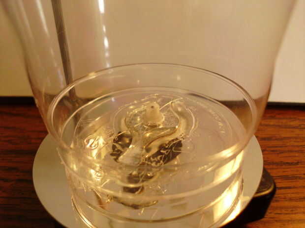 Tomar el vaso rojo e instalar en el mecanismo del reloj de "Minutos". Foto 2 (necesita poner las pegatinas de "segunda" en primer lugar)