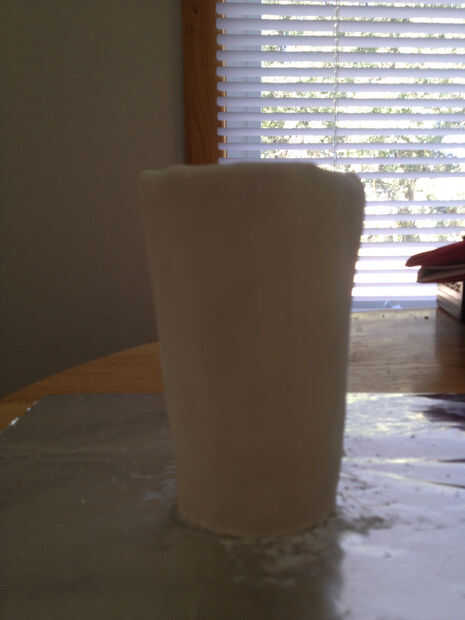 Enrolle un trozo de fondant blanco en una cuerda y sujete la Copa como el borde de la taza.