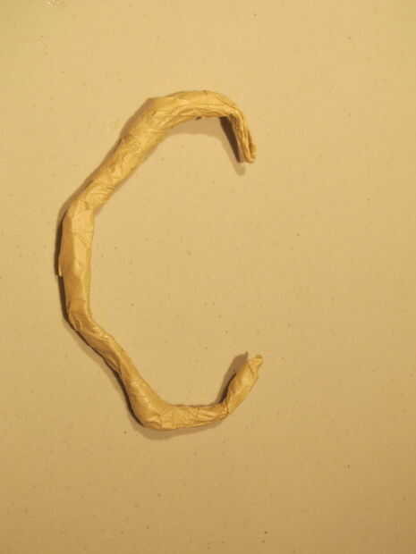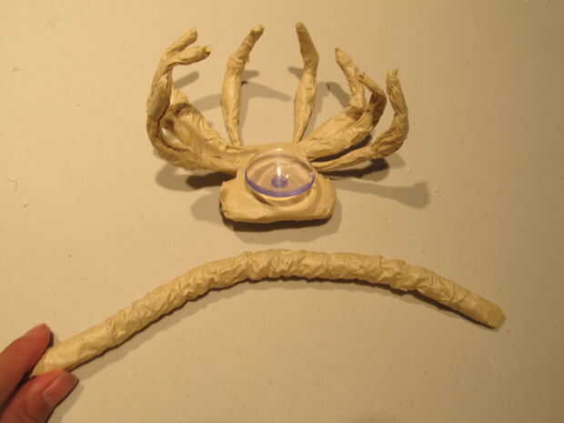 8. para hacer la cola, agregar el borrador de los primeros al final de la espiral. Luego Envuelva la cosa entera en cinta y agregar al cuerpo.