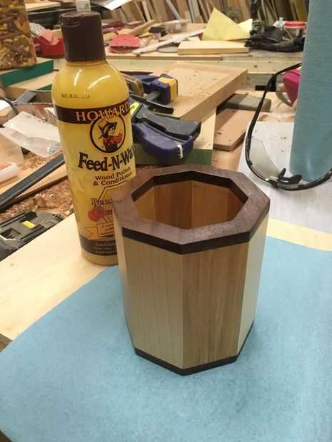 Creo que lijar todo hasta por lo menos 150 grano, quizás 180. Si lo desea, podría han hecho mucho más que forma y redondeada hacia el lado de convertir esto en una taza circular. Pero no quiero. El octágono se ve más limpia.