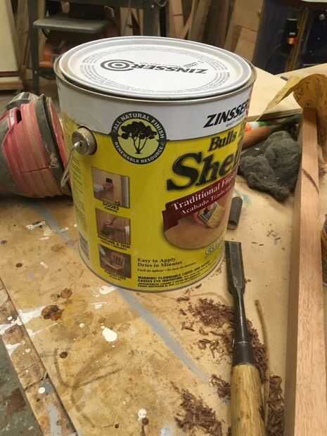 Empezamos terminando con una capa de Amber Shellac, para hacer los colores pop. Entonces, después de desgaste lijado, una capa de poliuretano transparente. Limpiar la goma laca y rocía el poliuretano, que sólo fue lijado con una almohadilla de desgaste "super fino". Sólo por diversión encerado la copa sobre un montón de cera, y luego limpiar lo que no había sido absorbido.