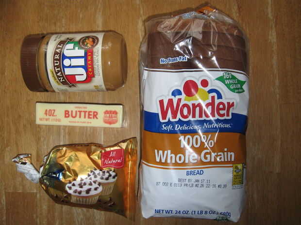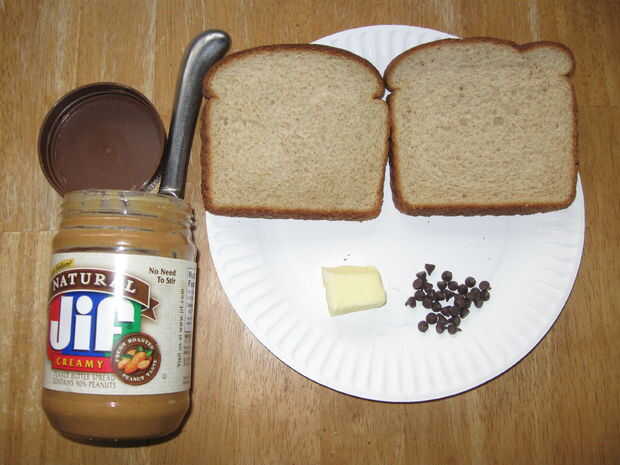 El único ingrediente donde el tipo realmente importa es la mantequilla de maní. Te recomiendo crema, ya que el efecto es mucho mejor. Aparte de eso, todo lo que necesitas es pan, mantequilla y chispas de chocolate.