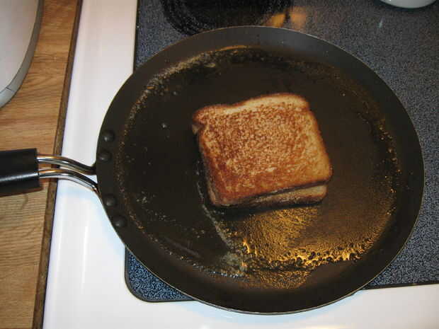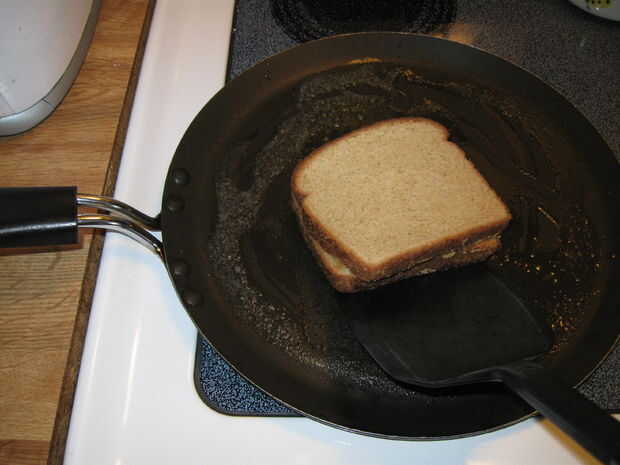 Cuando le da la vuelta el sándwich, asegúrese de que usted cubrir adecuadamente el lado fresco con mantequilla (para que no se queme).