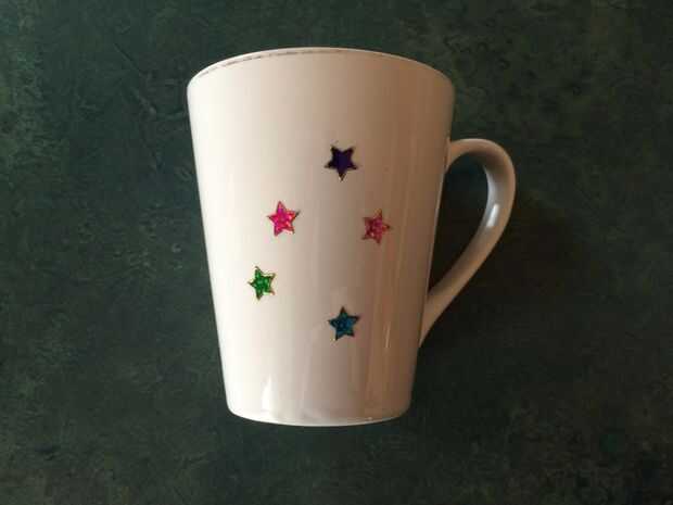 Paso 3: Etiquetas engomadas de la cinta u otras calcomanías a la taza (paso opcional)