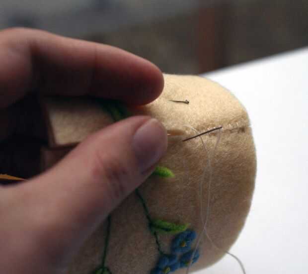 interior sentía por 2-5 mm dependiendo del espesor de fieltro (de lo contrario el interior sentía va de onda).