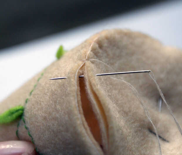 Poco complicado! Tomar ambos círculos (con Vilone planchada dentro) y puntadas para el rodillo inferior de la taza. Asegúrese de que unir los 4 pedazos de fieltro todo el tiempo! Utilice hilo coincidente y ribete.