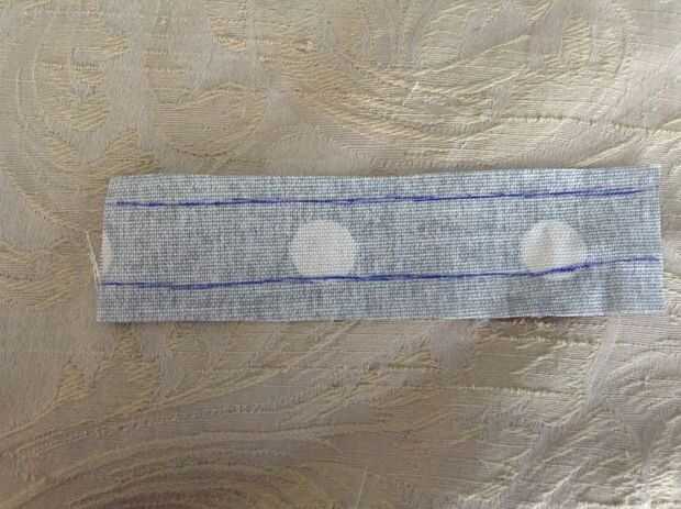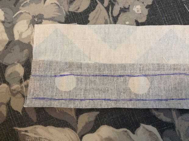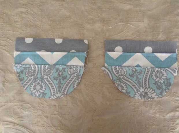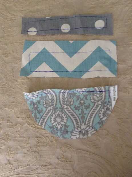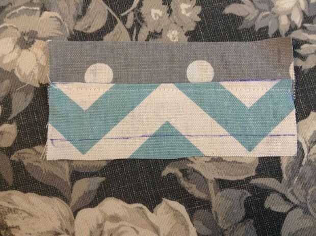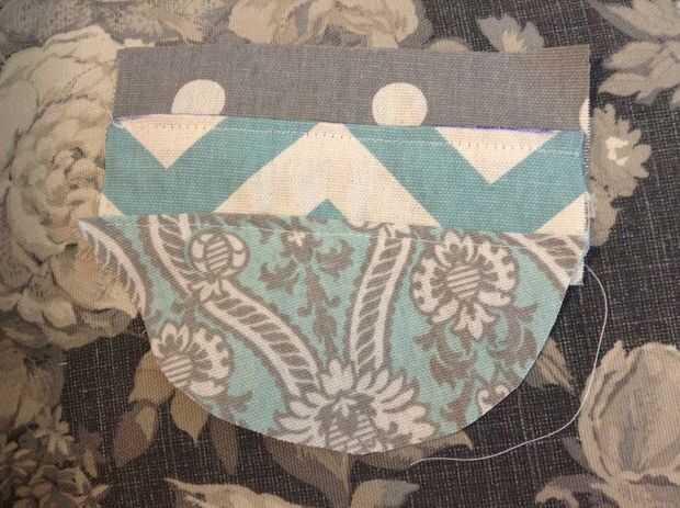 Corte hacia fuera y coser las tres telas que desea en el exterior como por encima. Asegúrese de que en la parte superior e inferior de la tira que se corte más grueso en la parte superior e inferior. (Para el revestimiento interior será el cuarto color)