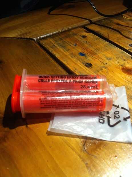 Puesto que eran un poco los hilos de rosca en perno de ojo de mi menor/no el mismo tono como la rosca hembra en la parte posterior de la perilla, tuve que usar un pegamento de epoxy para mantenerlos juntos.
