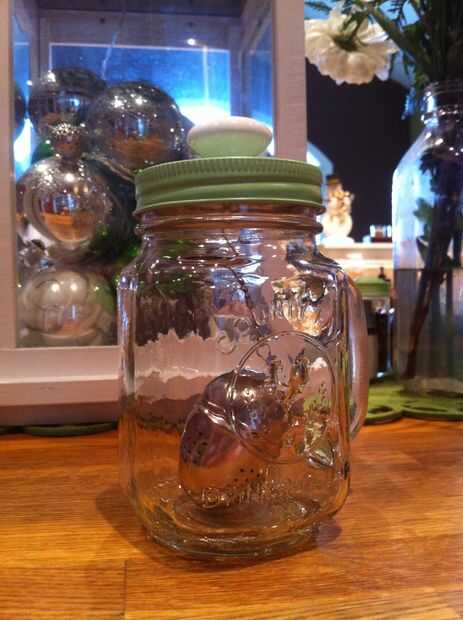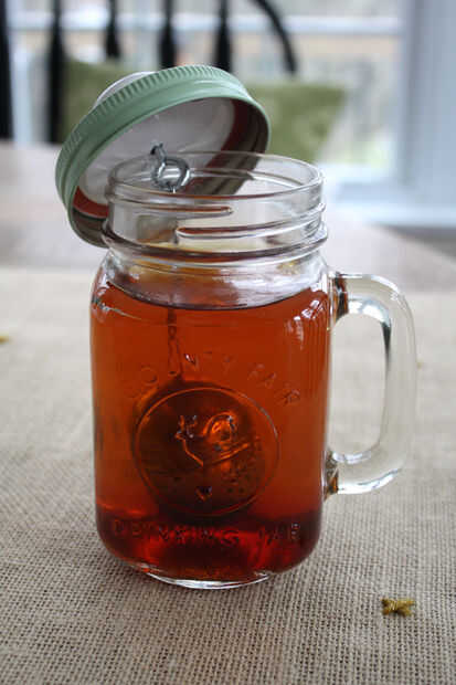 Ahora sólo llene su bola de té con té hojas sueltas, hervir la tetera y su tarro de Masón se llenan de agua caliente. Ahora, sumerja su bola de té en el agua y el hilo de rosca de la tapa del tarro de masón en. Disfruta de tu té!