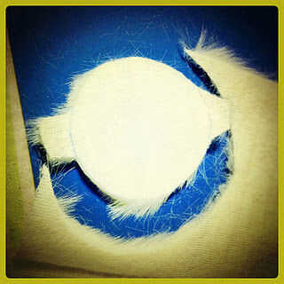 Una vez que tenga todos sus materiales se quiere predisponer la piel con el dorso hacia arriba y trazar su taza de té de apertura en la parte posterior de su chaqueta de piel falsa. (Tip: deja una pestaña en ambos lados como se ve en la foto de abajo. Esto ayuda en el proceso de encolado y mantiene todo apretado).