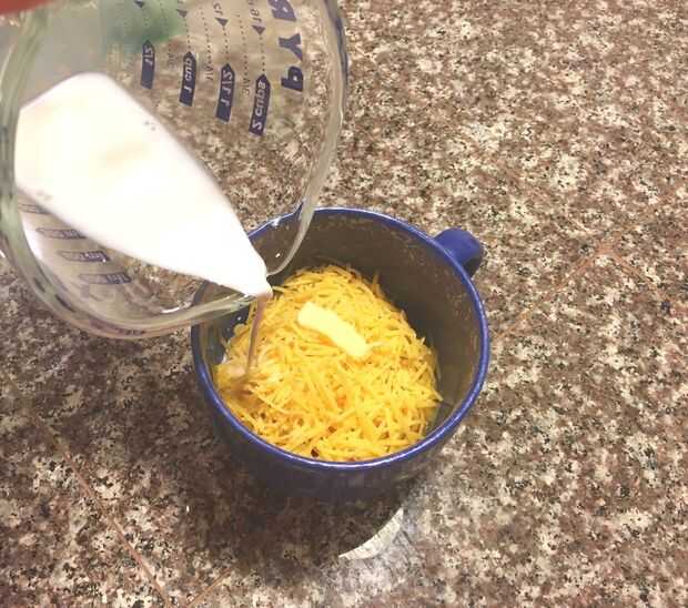 Una vez que han cocinado tus fideos, puede Agregar el queso, la mantequilla y la leche a su taza. Dar tus fideos una agitación rápida con todos los productos lácteos para incorporar uniformemente. Esto permitirá un uniforme de fusión y la mezcla de tu mac y queso.