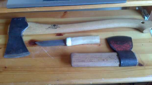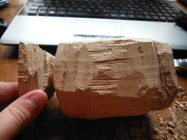 Usando un hacha más pequeño, para un mejor control, dio una forma vaga en el exterior de la taza y el área donde estaría el mango.
