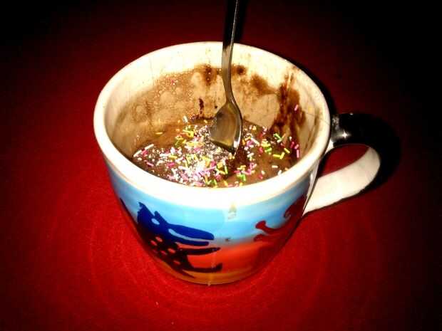Ahora sólo ponga la taza boca abajo y la bifurcación de la torta. Pero comió de la taza :D